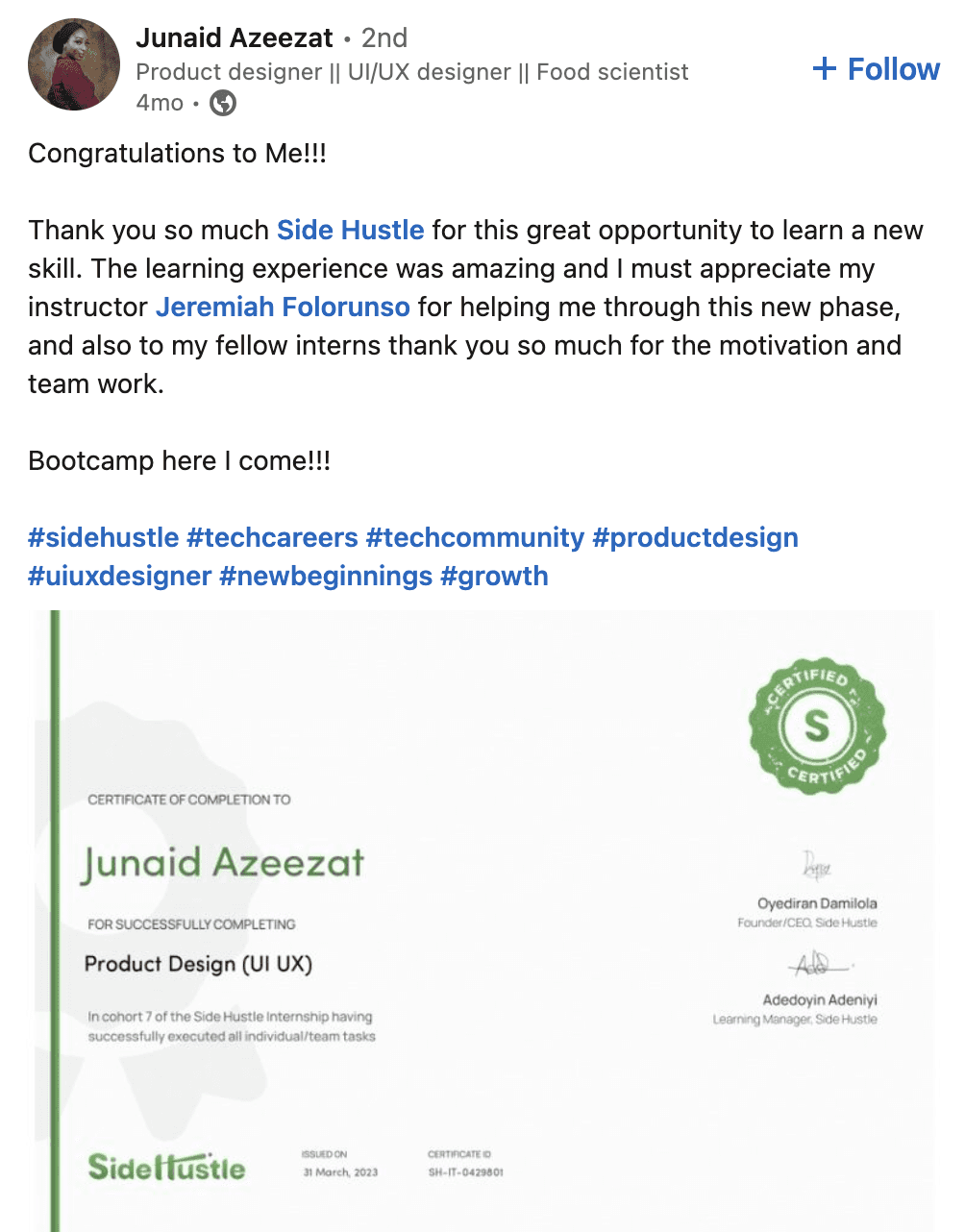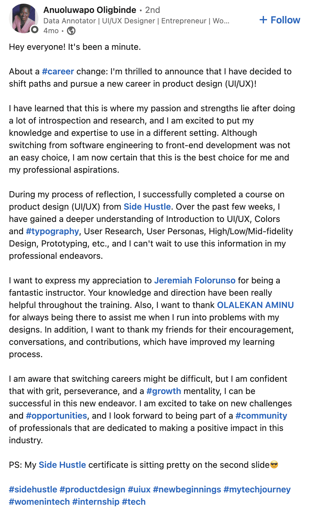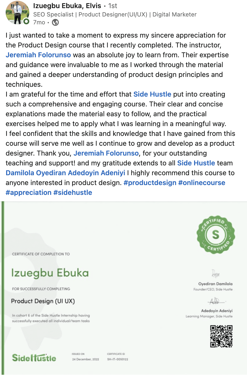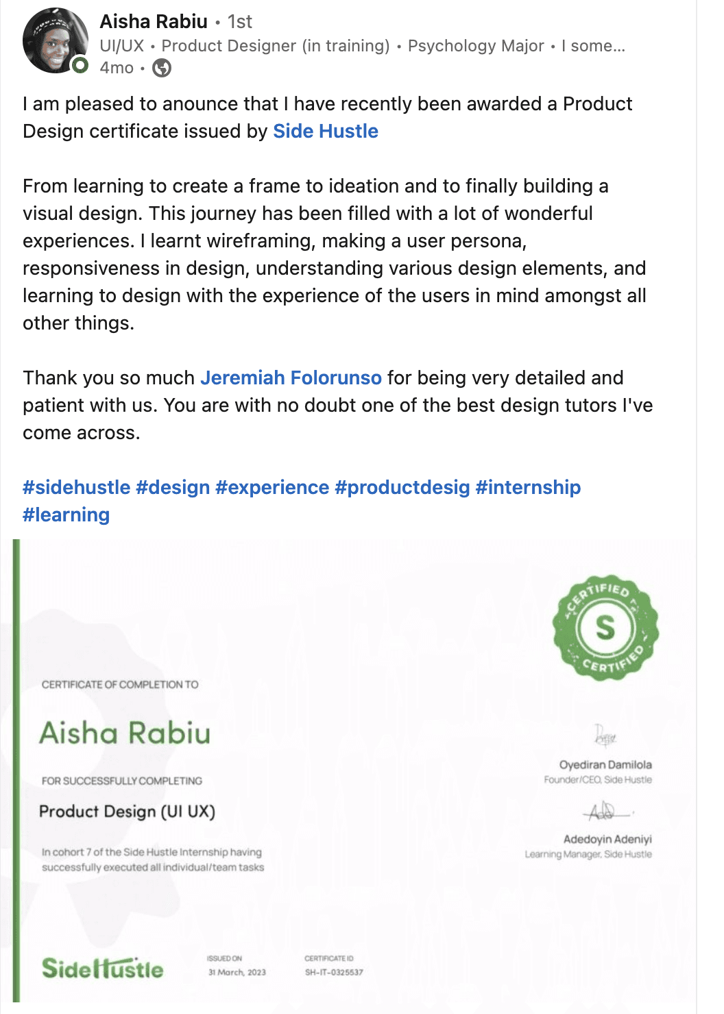 Outside of design practice, I make efforts to have a positive influence. Terra learning (formerly Sidehustle NG) has helped me achieve this
